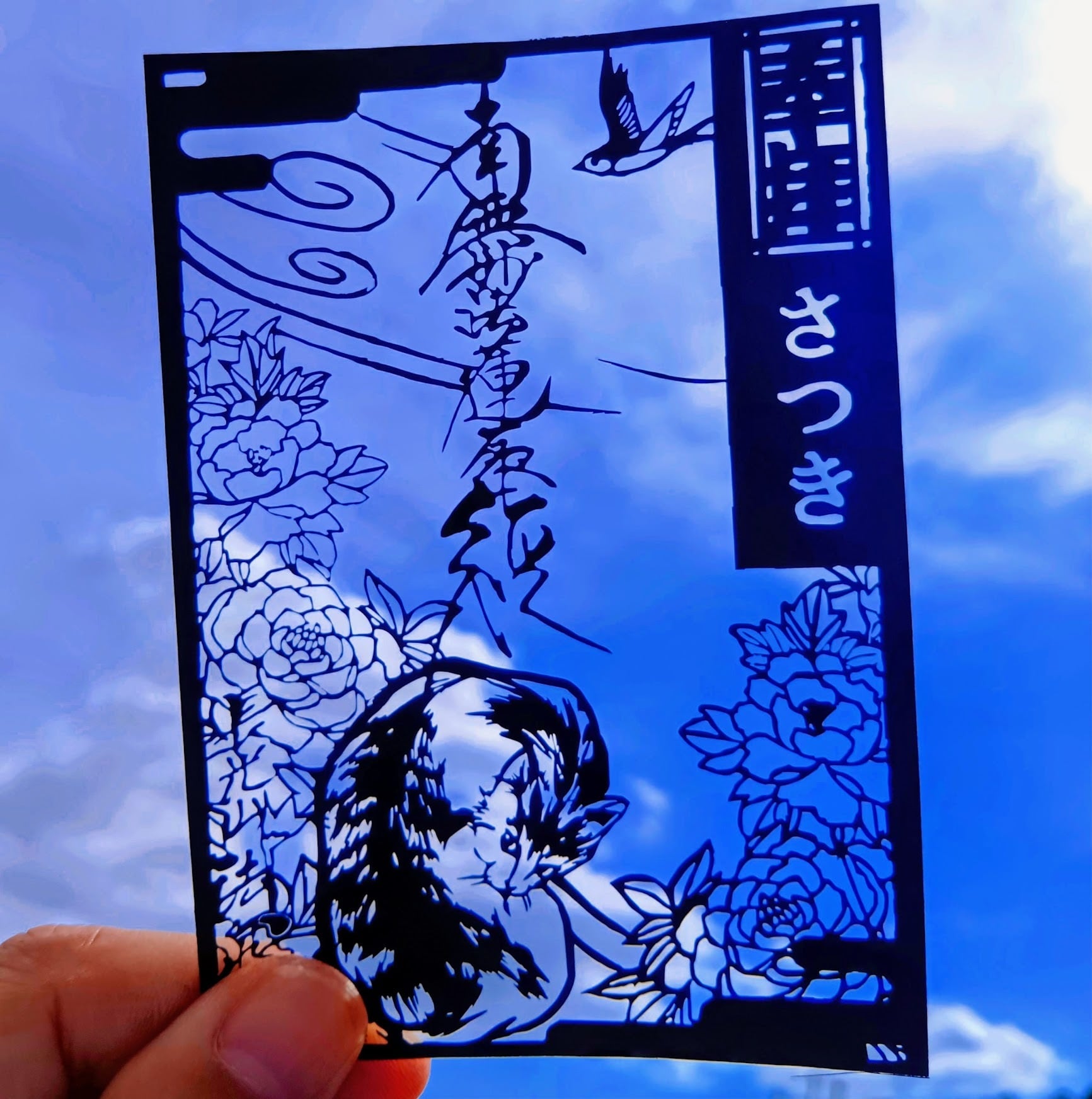 ☆法泉寺手作りのオリジナル 猫のミニ切り絵御朱印 二枚セット☆