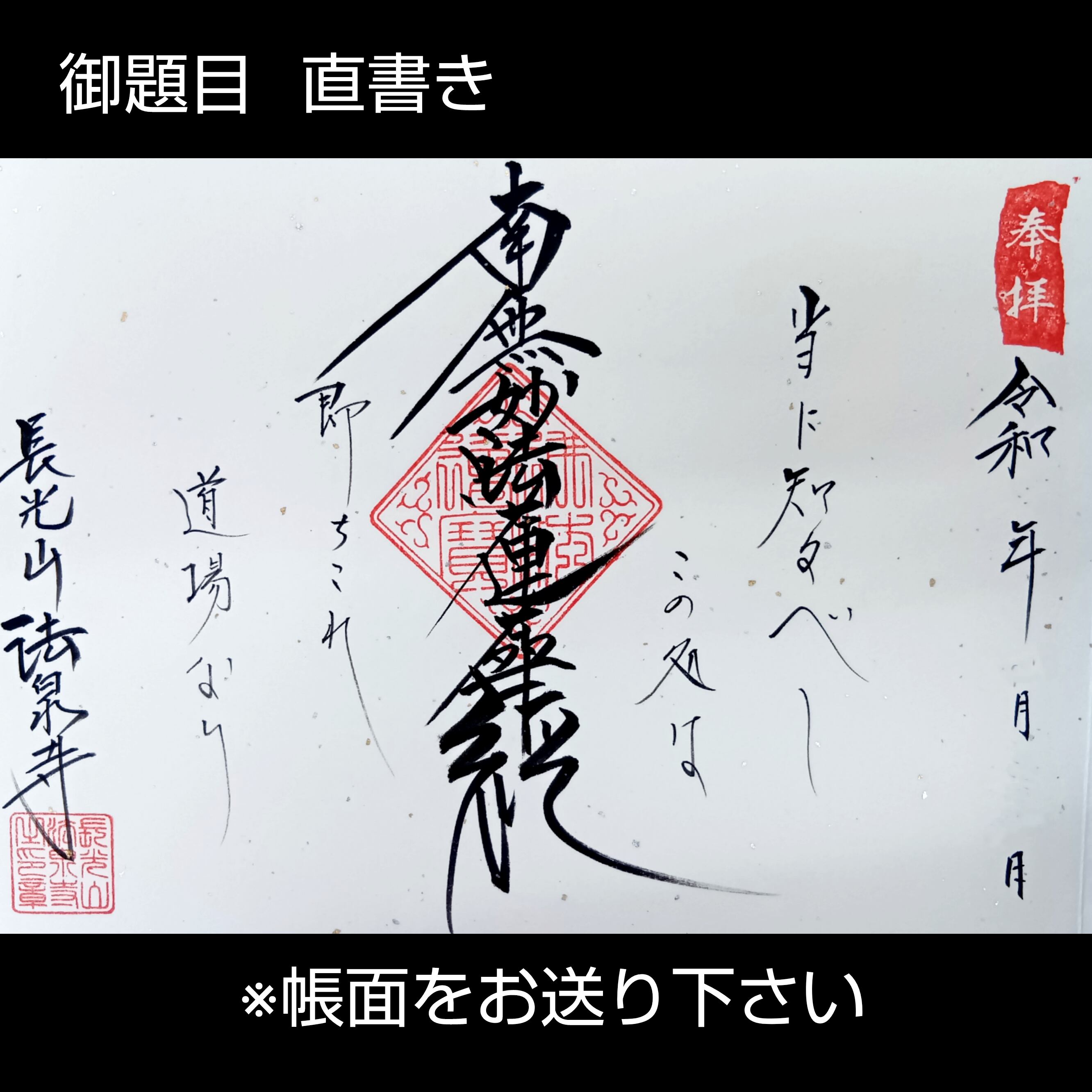 法泉寺住職直書きの御首題です。法華経、もしくは日蓮聖人の御遺文を添えています。